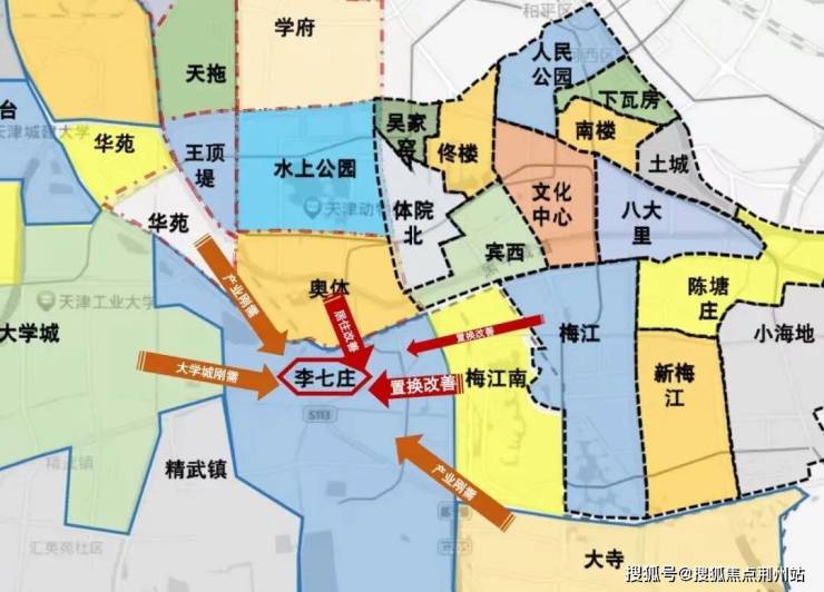 按照2010年统计数据,李七庄街户籍人口是74762人,到2016年末,李七庄街道总人口已经有20万人,几乎是倍数式增长。大量人口带来的商业配套与居住成熟度快速提升无疑会强化整个片区的吸纳能力。目前板块内部自身已经有了中医一附院、滨湖医院、万科东第广场等配套,环内部分的凌奥创意产业园、王兰庄片区、卫津南路汽车城等基本已经完成了市区化过程。伴随着外环沿线的开发,环外李七庄以其成熟度,将会很快与城市核心功能区融为一体。