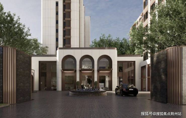 立面方面,建筑凝练新古典主义美学精粹,以经典三段式立面,采用金属、石材、铝板为主材,用棱角分明的硬朗线条,让整个建筑立面透出典雅挺拔的质感,视觉识别度很高。