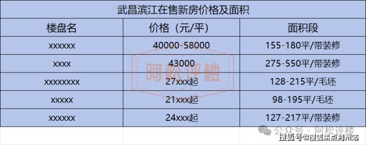 与之相比,武昌滨江新房单价则约21XXX-4XXXX元/平不等,只有核心区极个别楼盘单价约4万+元/平,置业门槛约200多万起。