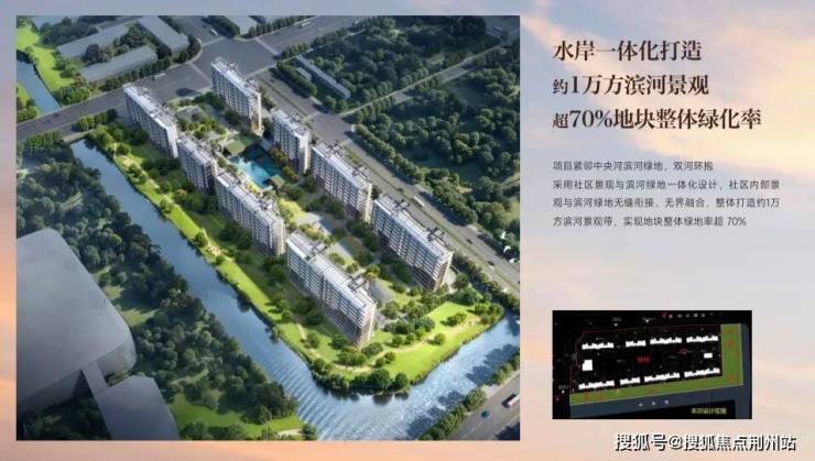 项目主动将红线外景观纳入目标成本,借助东南两侧双面环水优势,规划专属滨水步行休闲带,打造独特的滨水居住氛围,整体超70%绿地率。