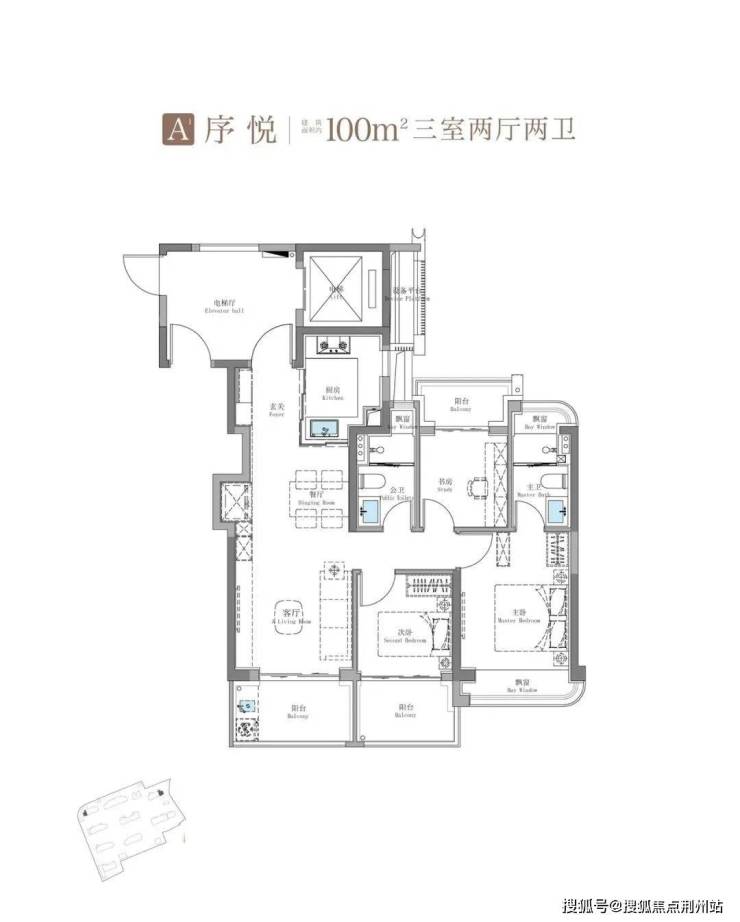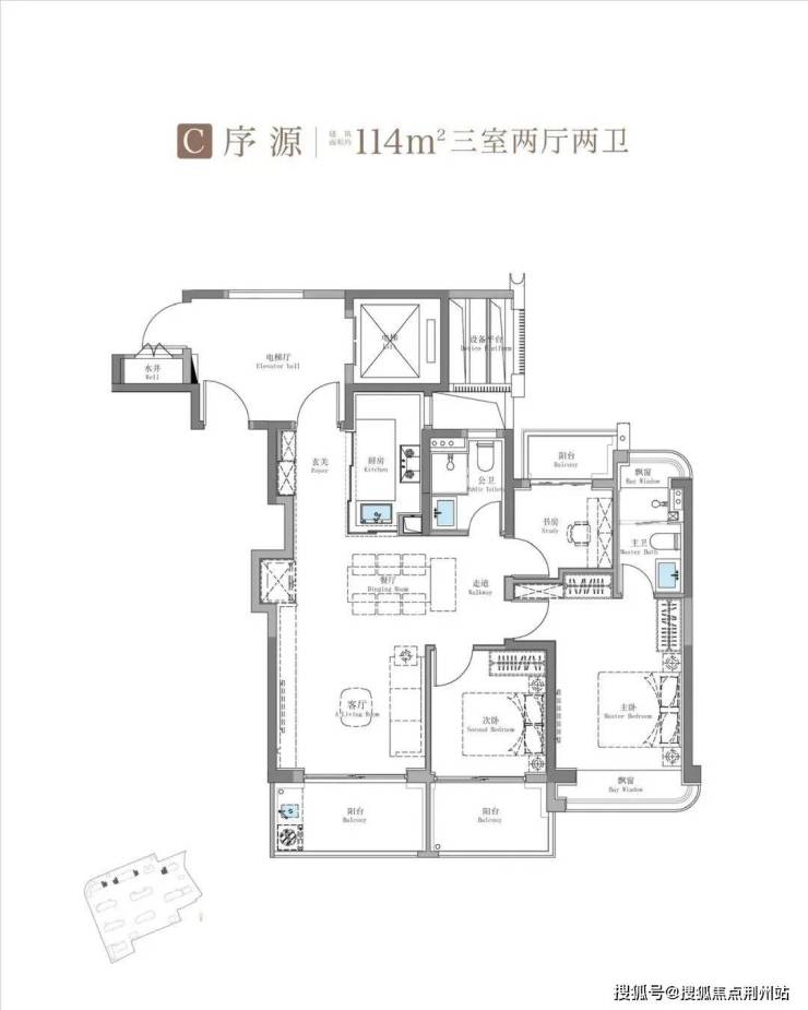750万级115㎡鲲鹏阁三房户型