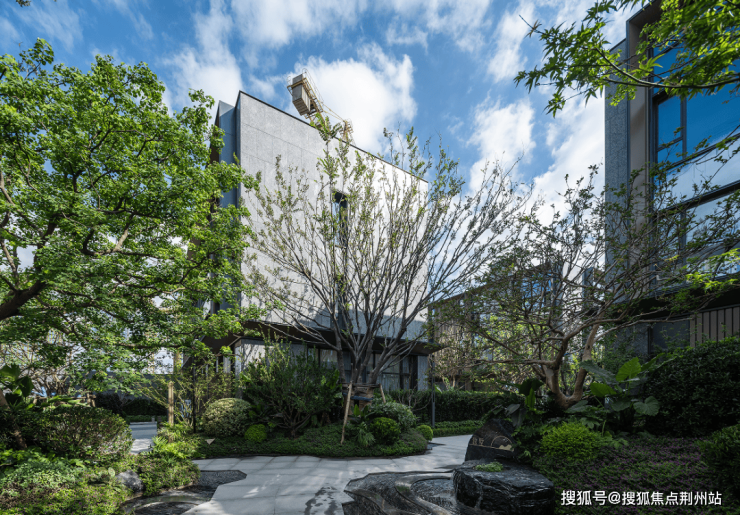 【私藏山水】,居山水之间,是中国人绵延千年的最高居住理想,项目以一条金属带贯穿庭院与五座景石,寓意南通五狼山与濠河的自然胜景,彰显雅商们私藏山水的意趣,也让生活充满山水灵性和诗意。