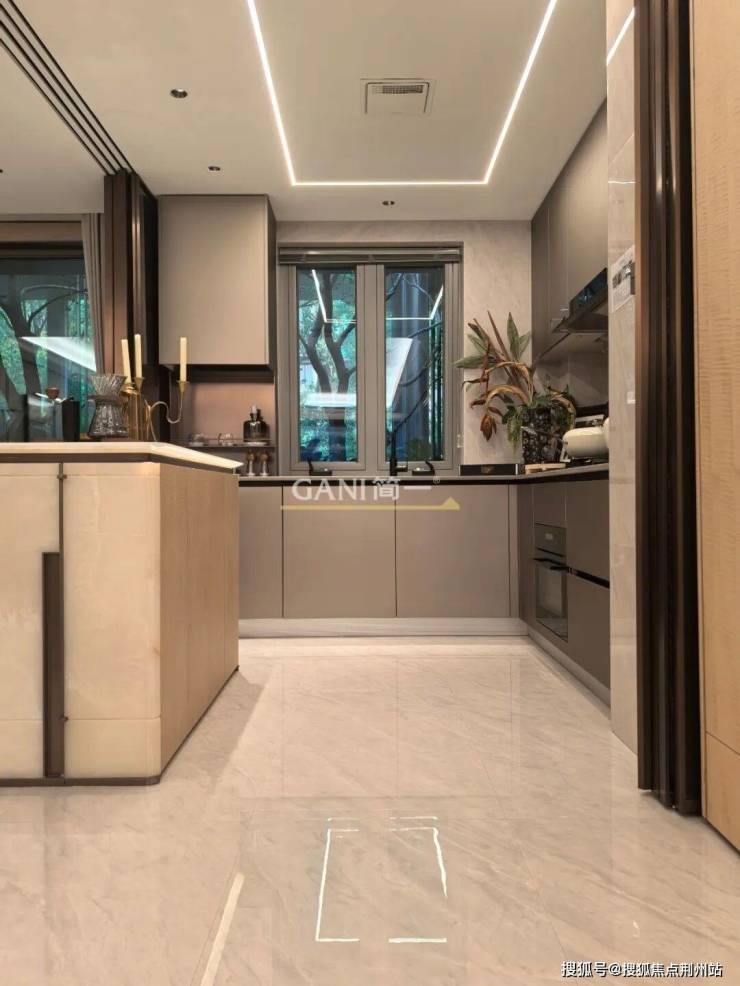 厨房墙地面选用云朵灰大理石瓷砖密缝铺贴,天然纹理作为基本元素丰富空间内在,完美调和现代雅奢气质,灵动感满满。