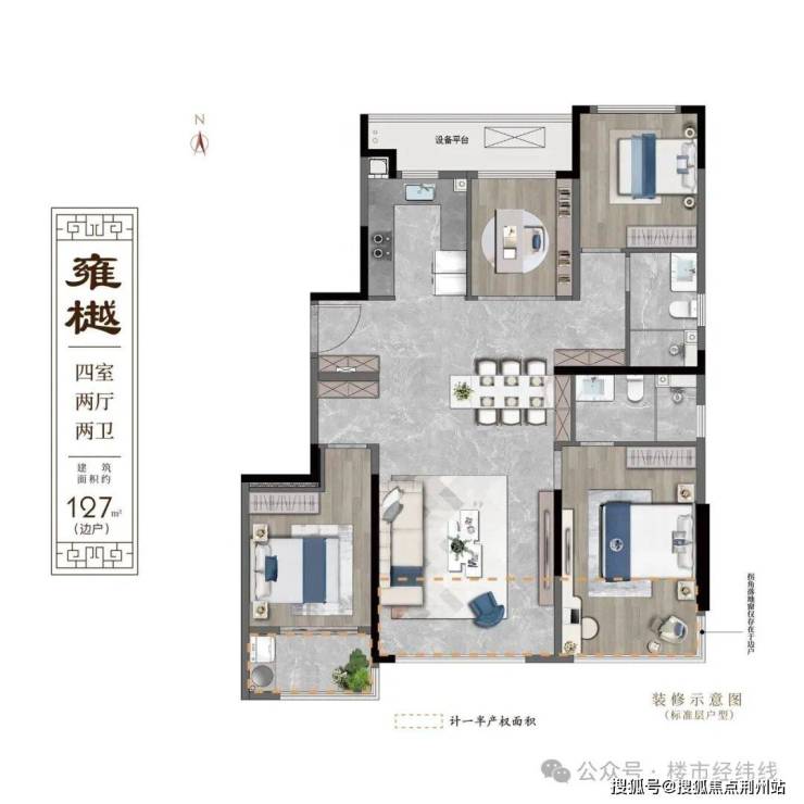 外立面采用三段式设计,从飞檐到立面线条,搭配中式纹路的点缀,尽显沉稳大气;北门入户大堂规划“无雨落客区”,为业主提供打车出行的酒店式落客归家体验;同时采用地上及地下双精装入户大堂设计,礼遇每次归家之旅;地下车库采用环氧地坪漆材质,呵护尊驾,礼制归家。