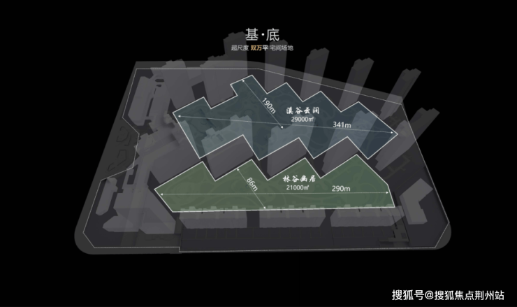 场地内部建筑围合形成了两个超尺度双万平宅间空间,这样的空间条件与自然资源优势暗示着领馆壹号将会有一种与其他社区不一样的生活体验。
