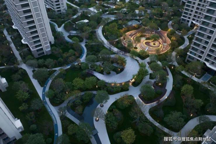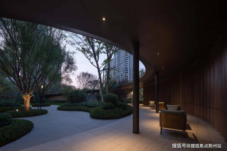 半环形构造依托地形顺势而起,一廊多用,双向功能体验四季变化,目光所及,皆是生活。华灯初上,呈现出精致温馨的场景,创造一种放松舒适与品质奢享的平衡。