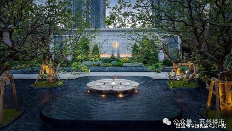 约5米高悬挑飞瀑添灵动,搭配羽毛枫等多层次绿化与镜面树池错层平台,完全跳出传统改善盘的堆叠感,有种在酒店度假的松驰感。