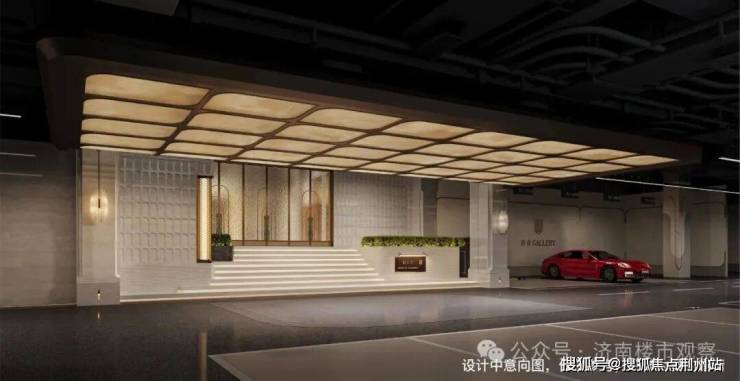 进入车库,它拥有与兰博基尼酒店同款形制的地下光厅,地面采用高端耐用的水磨石,顶部是深古铜铝板天花,处处彰显着极致品质。