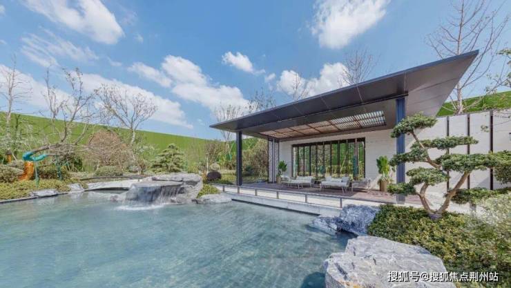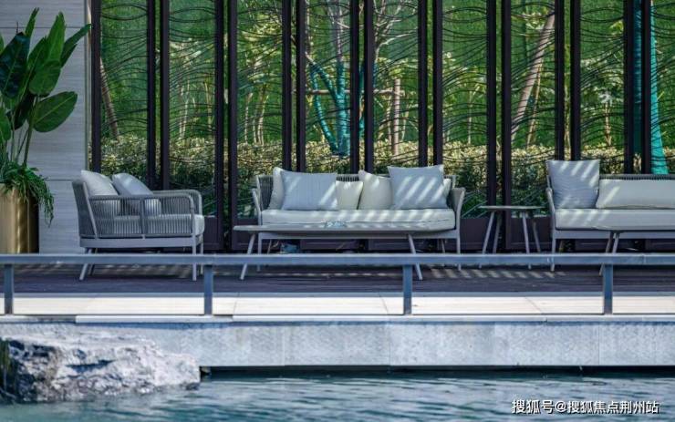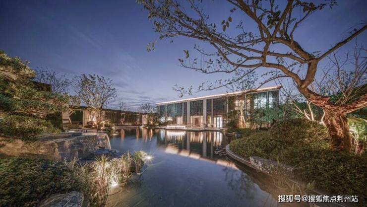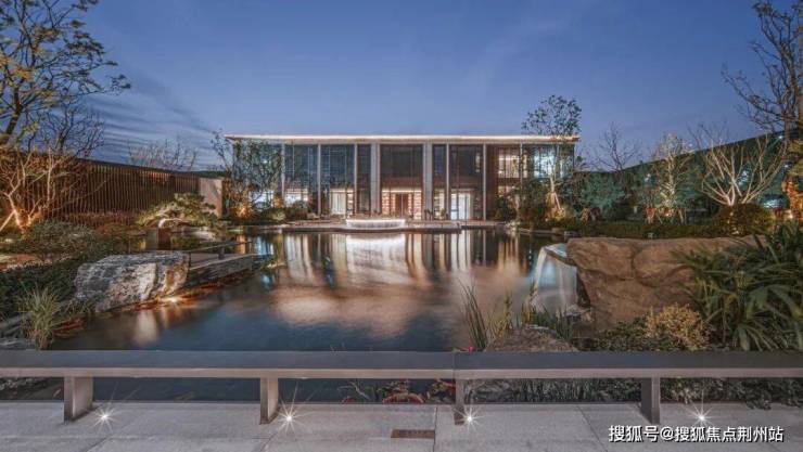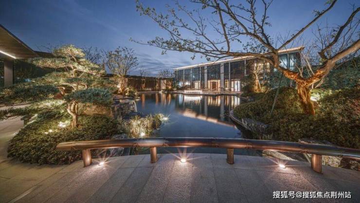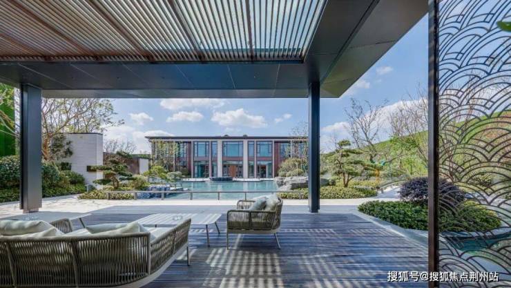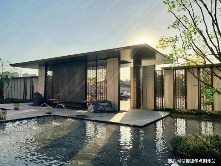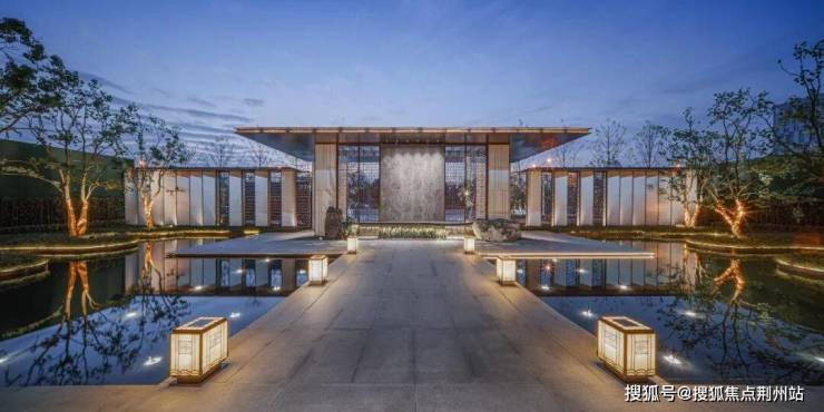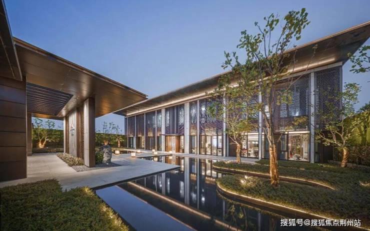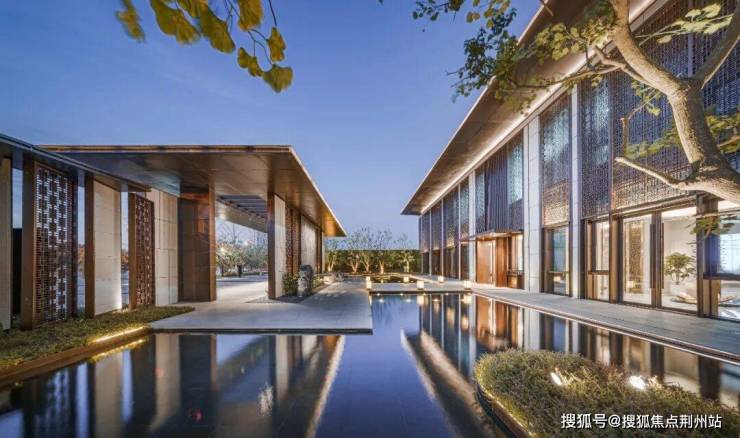 景观会客厅采用现代艺术手法与传统建筑样式相结合的手法进行设计,整体虚实有度,歇息于此时,感受自然与心灵的呼应:看前方水面波光粼粼,点点星光,微微拂动;观后院树影婆娑,绿意盎然,行云流水间不经意撩动你的心扉。
