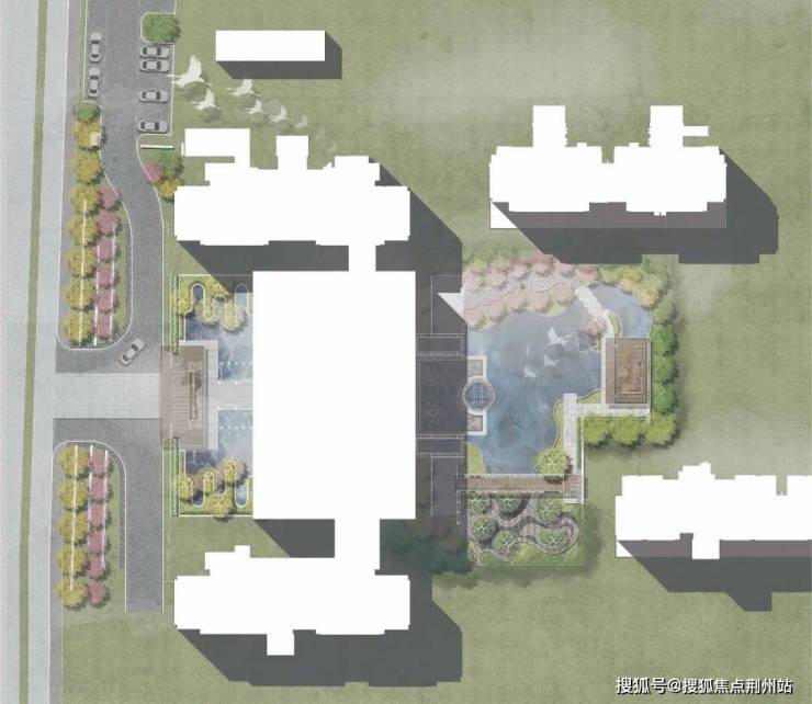从泛会所进入中心水景区,首先映入眼帘的是灵动水盘,巨大的圆盘水景雕塑像是砚台一样,汩汩清泉从灵动水盘里不断翻涌,就像砚台里的墨水不断翻涌,书香流韵在每一支分流里,流向每个归家人的心中