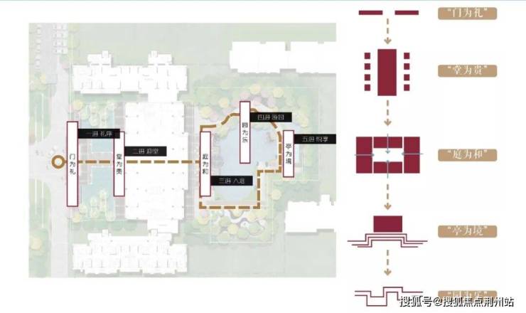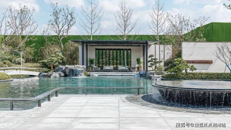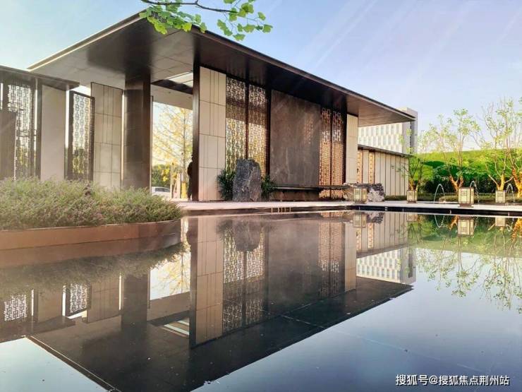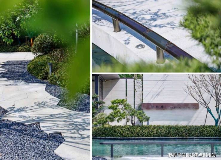 主入口从渐进式多重院落中提取灵感,融合新中式风格的屏风,并从“苏州园林”中汲取山水林泉的生活美学,打造现代简约新东方景观,于方寸之间彰显一园天地,给人一种典雅尊贵轻奢的感受。