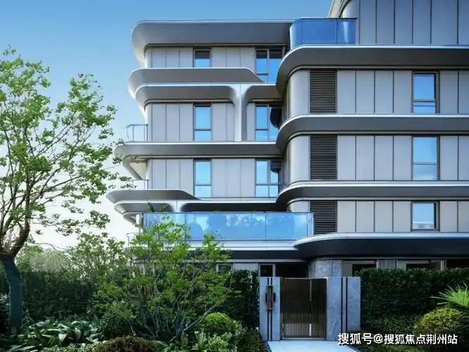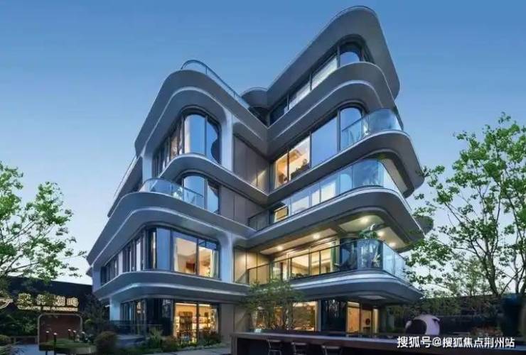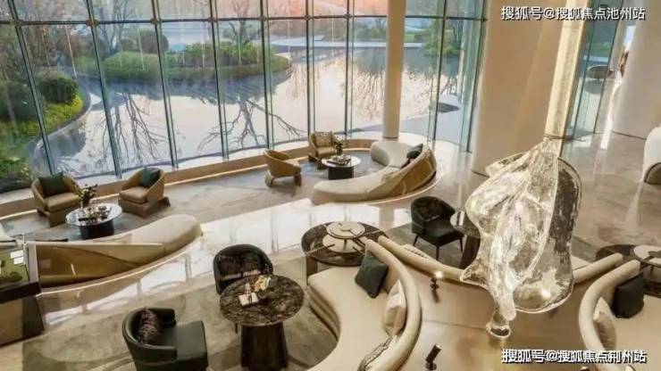 项目汲取奥体中心与太湖的无限流淌感,用灵动的竖向线条模拟湖面流淌与波动的状态,用几何解构的方式创造出一种新的波动形状,恰好呼应了无锡时代发展中「潮」的精神内涵。外立面用圆弧转角代替传统直角,搭配大面积的玻璃窗,较高的窗墙比,将视野无限打开延伸,就像一个 “宽屏取景器”,将太湖的风景框入其中,成为生活的一部分,让太湖成为一片可私享的自家湖岸。