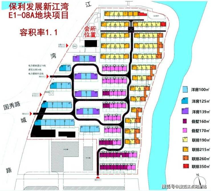 项目容积率仅1.1,打造两面环水景观低密社区,建造明确有会所。