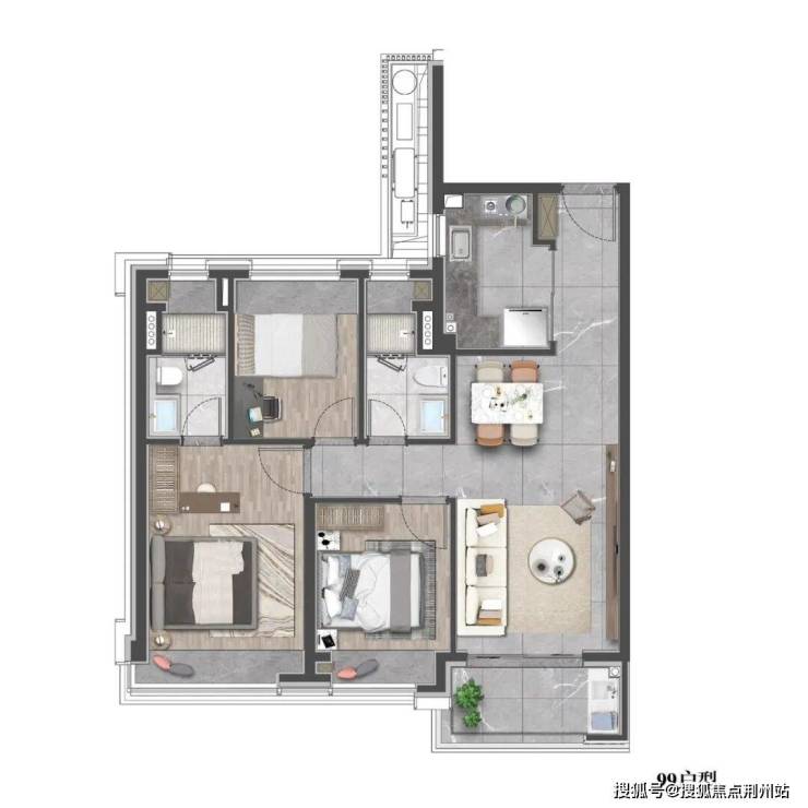 三进:尊享水苑-入户门庭仪式水景;下沉会所-私享品质生活;社区会客厅(约20m²)-度假式摩登私享泛会所。