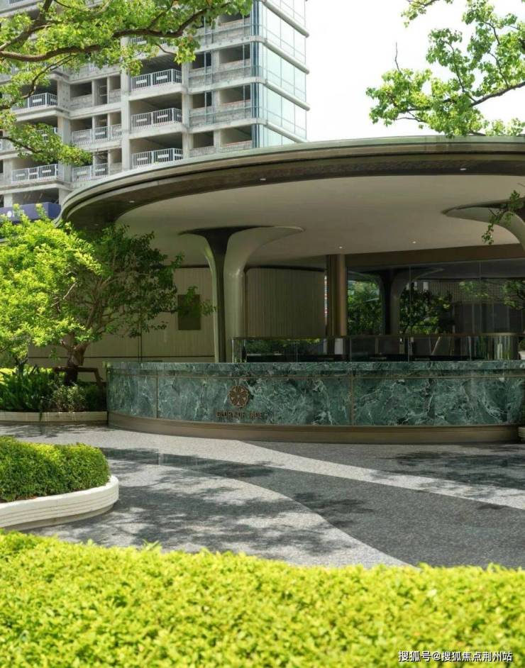 绿化亮点·入口仪式感,一进小区,就被这抹绿和质感戳中了。修剪得整整齐齐的绿篱,把入口区域打理得干净利落。弧形前台搭配深绿大理石,和周围的绿意刚好呼应,不花哨、不土气,高级感一下就出来了
