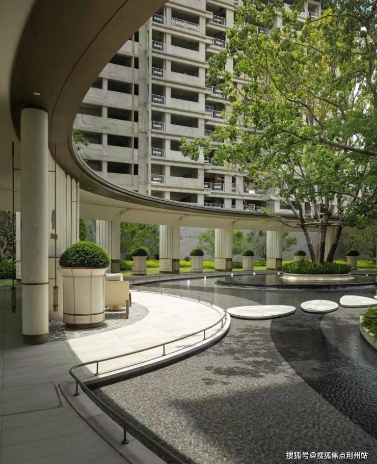 入口即见的核心景观轴,以水为媒,以树为幕。高大乔木搭配层次灌木,形成“高-中-低”的立体绿化体系。刚入小区,就被满屏的自然感包裹。