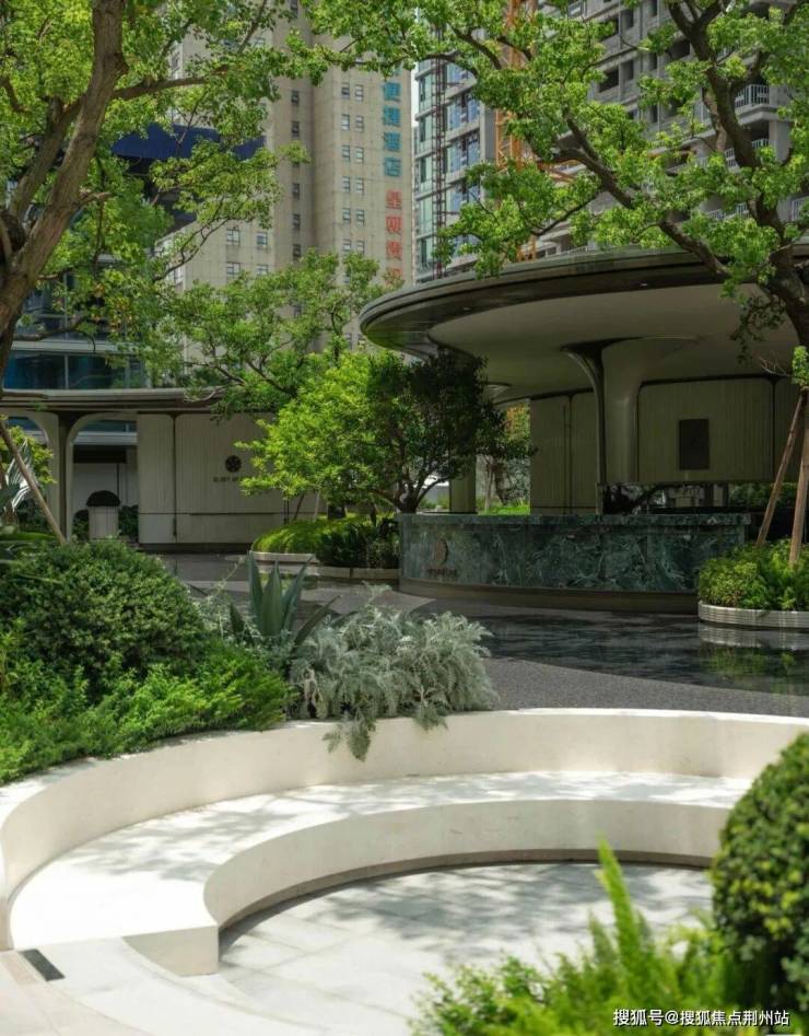 功能性绿化场景弧形休憩区被绿植环绕,形成独立的“林下客厅”。高枝乔木遮阴,低矮绿植围合,既保证了私密性,又充满生机。
