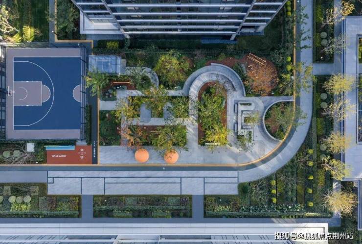 只是种树没什么了不起,难的是如何在树林中融入更多功能。绿城·凤起潮鸣几乎在每一座树林中都植入了不同的主题:「春知学堂」、戏水池、旱溪……还有树林掩映的篮球场、网球场和童玩区。这样的功能混合,可以激发你日常漫步的探索欲。