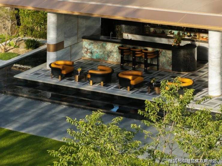 坐在微微抬高的「浮岛客厅」中,脚边是流水淙淙,身后是巴西亚马逊透光奢石丝绸般的流光。从宁波中心方向照过来的夕阳,会让这个「浮岛客厅」拥有遥相呼应的璀璨。