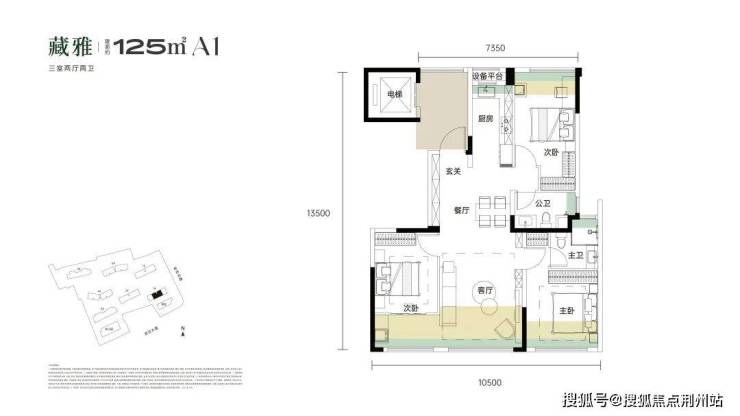 :南北通透+主卧套房,双卫全明设计。