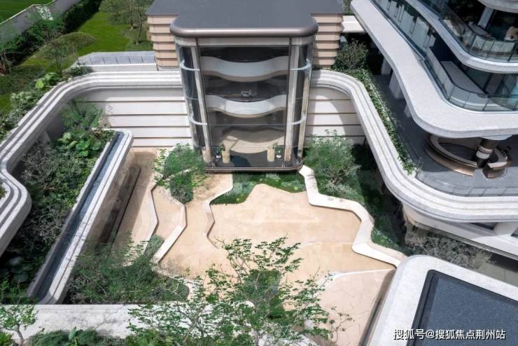项目配置全域风雨连廊,以风雨连廊作为链接前场节点的视觉通廊,沿途景观一一铺展,当你归家时犹如穿越绿洲的旅行。