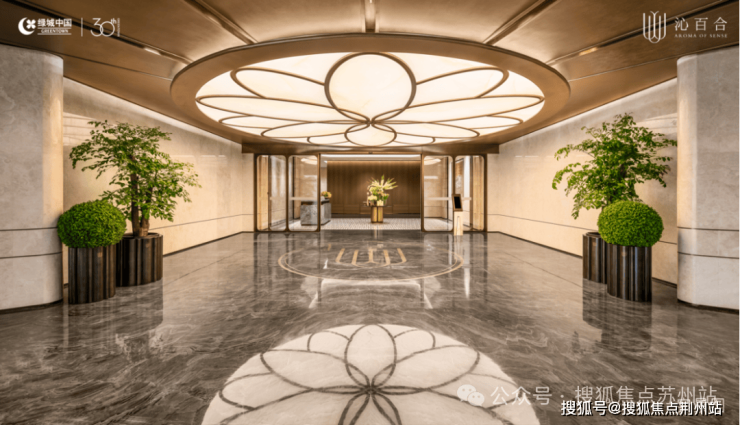 整座大门约40米恢弘门头,第一眼的尺度感足以让人惊艳,再搭配金色百合花瓣吊顶,是目前板块内非常气派的归家大门,视觉效果非常震撼。