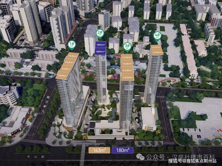 项目共 4 栋楼,其中有1号楼2个单元31层,均为143m²户型;2号楼独单元31层,均为180m²户型;3号楼2个单元32 层,均为143m²户型;4号楼独单元31层,均为143m²户型。项目预计首开 1、2 号楼,所有楼栋均为 2 梯 2 户的独梯入户。