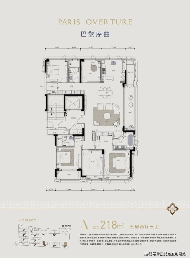建面约218方为5房2厅3卫,建面约238方为5房2厅4卫!