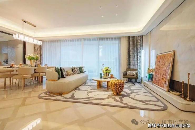 4)客餐厅:大理石拼花+波导线(滨江自我坚持)、客厅岩板背景墙、全屋墙纸+木饰面+硬包,增配