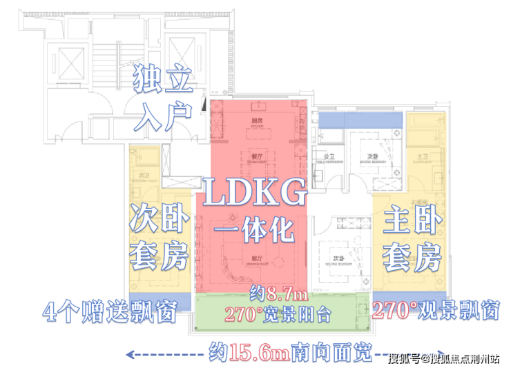 约8.7m南向宽景阳台, 打造270°环幕视野,定义高阶生活的奢阔尺度。