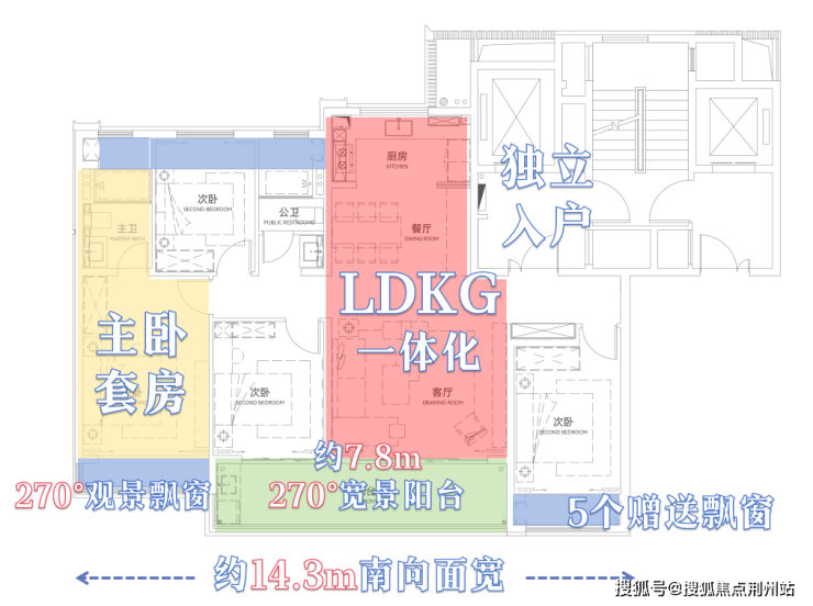 【建筑面积约143㎡户型】,从菁英圈层生活和改善人居品质出发。宽阔的四室设计, 主要功能空间全部朝南,达到了市面上 160㎡户型的空间舒适感,圈起了一家人的幸福。