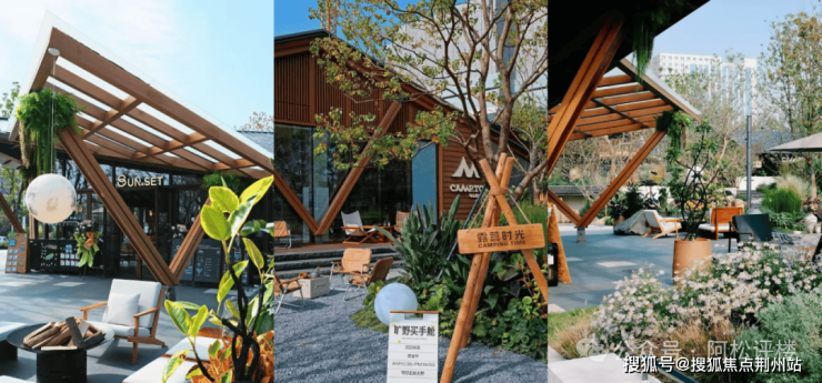 项目建筑错落布局,每栋都拥有可装饰、可布展的“前庭后院”,随意摆放几把桌椅、或搭建几个帐篷……与商家主题相搭配的自然、野趣、户外体验就呈现在眼前。