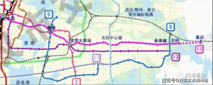 地铁与公交:项目距离2号线黄龙山站和在建的11号线关山大道站约1.9公里,都不算近,规划中的地铁13号线线路预计沿南湖大道通过,正好在项目南面,距离项目比较近,还有一条线路9号线,和13号线在南湖大道上换乘,最新消息13号线和9号线都将纳入第五轮建设规划。