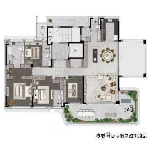 垂直合院:以“类独栋”尺度打造,每户配备约40-60平方米的空中花园,实现“云端垂直森林”的景观效果,满足多代同堂的居住需求。