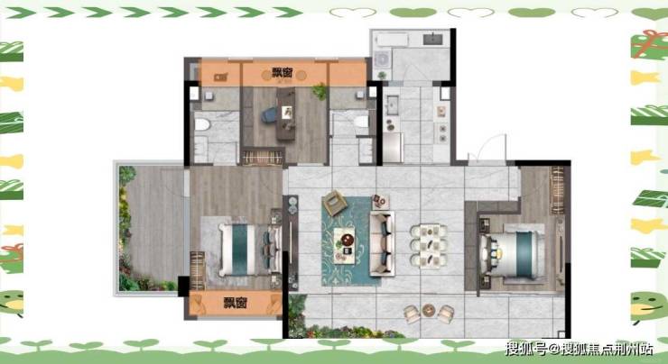 例如,该户型全屋配备了四个飘窗,总面积约7-8㎡,且这些面积均不计入产权范围。这些飘窗的设计相较于常规尺寸,进深提升了33%,达到了80cm,从而有效地扩大了室内的空间感。