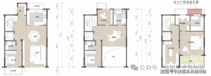 简单曝光几大户型。合院265㎡4房3厅4卫户型↓二层挑空、三层带露台,超高使用面积。