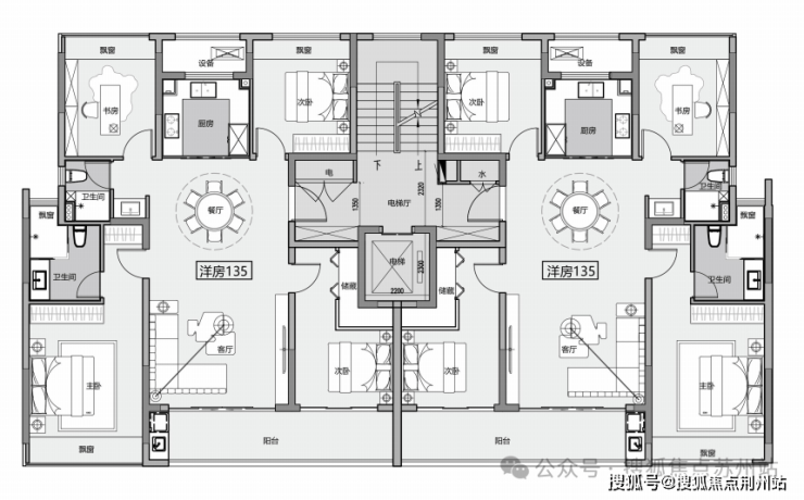 洋房135㎡3+1房2厅2卫户型图如下:
