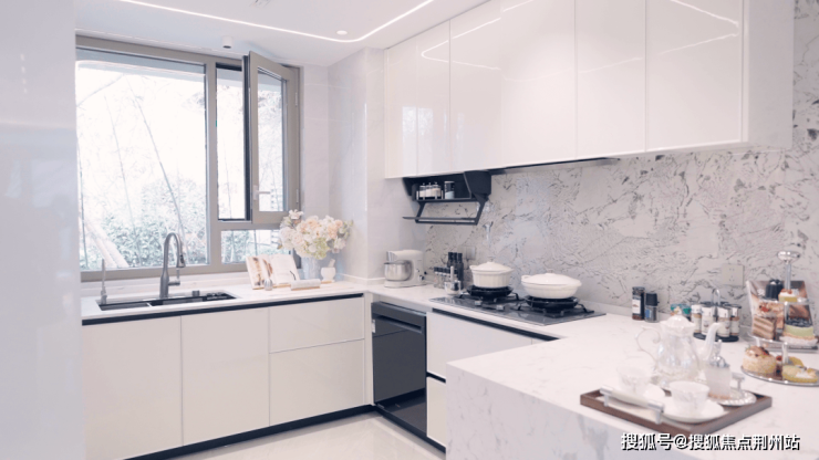 食品库藏在厨房中,上到吊柜里的天使拉篮,下到岛台内部“隐藏式”小推车和拉篮,还有岛台外侧的收纳空间,餐边柜的收纳空间,全都是交付标准!