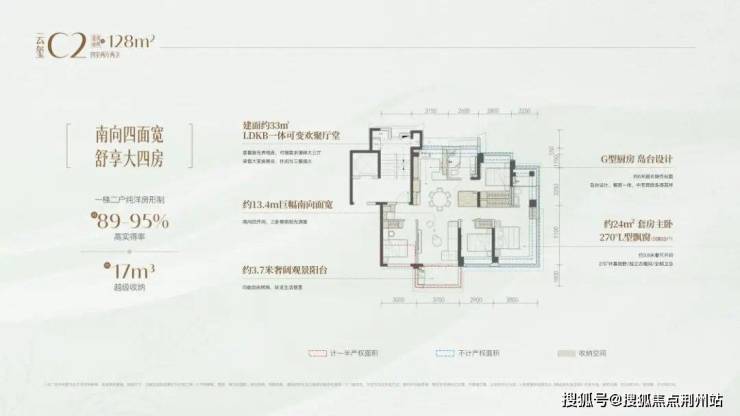 建发·云湖玥,约97㎡有个“三库”设计,约128㎡是四库设计: