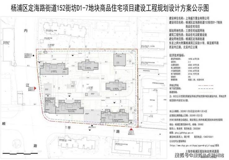 据官网显示,杨浦区定海路街道152街坊D1-7地块商品住宅项目建设工程规划设计方案公示。