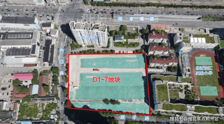 地块东至上师大附属杨浦滨江实验小学,南至顺平路,西至内江路,北至内江公寓,出让面积14958.66㎡,容积率2.5。