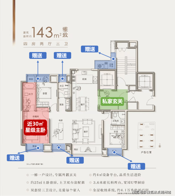 包括市面上不常见的一梯一户、超配设备平台、双套房三卫生间设计等等,从空间到功能,堪称昆山大平层里的教科书。