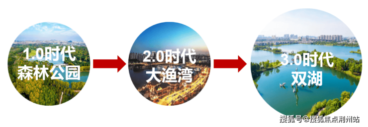 1.0时代,森林公园-文体中心片区;2.0时代,大渔湾片区;3.0时代,以中心湖-玉湖为代表的双湖片区。
