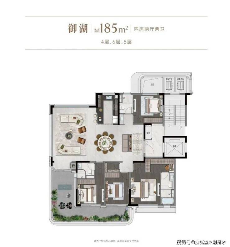 创新错层露台,精装品质升级:预计打造约185-260㎡大平层,配备智能家居系统,主打“墅级空间感”。