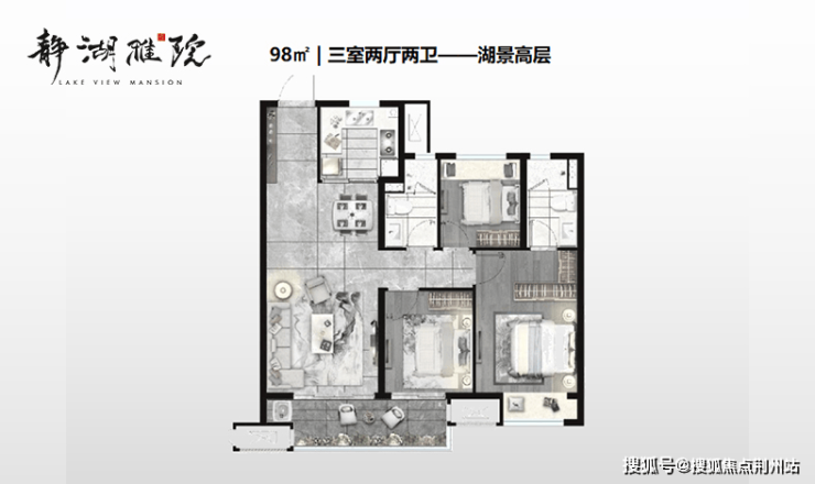 125㎡丨270°一线湖景,三阳台设计,湖光与阳光同享。
