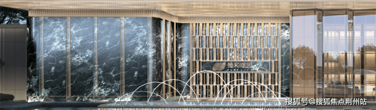 公区配置也质感满满,尤其是一楼大堂,少量铝板金属挑檐结合百达翡绿奢石点缀,尊贵感和仪式感拉满!