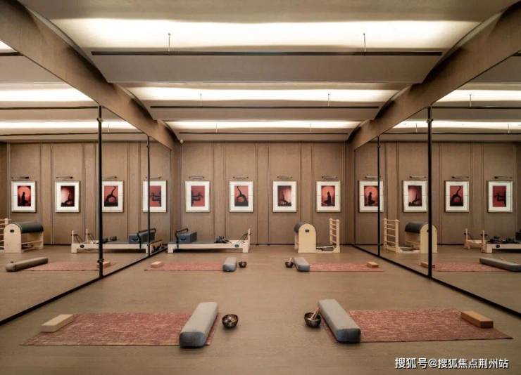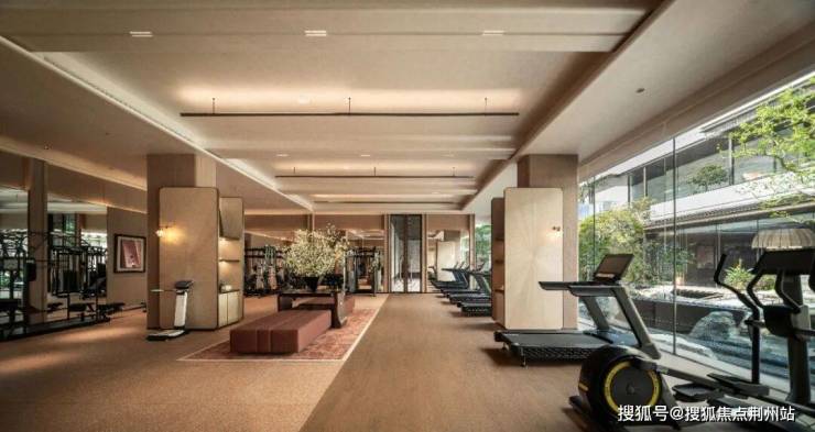 约600㎡下沉庭院,约1200方的会所形成了一个超强回游动线。健身房、瑜伽室、私宴厅、恒温泳池等高端标配全都有,因为地形方正,每个功能空间也比较开阔好用。