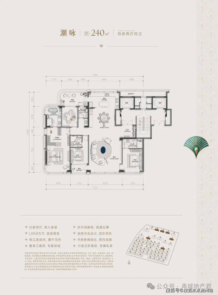 62#,户型240平看中庭景观,单价1.7-2.42万/平。
