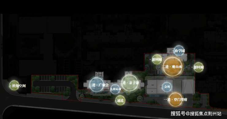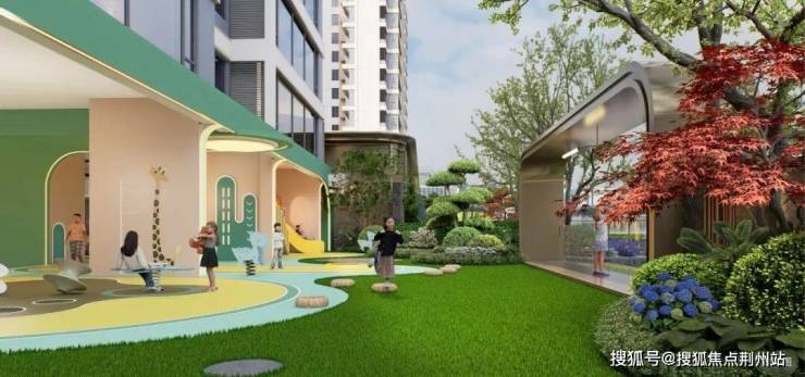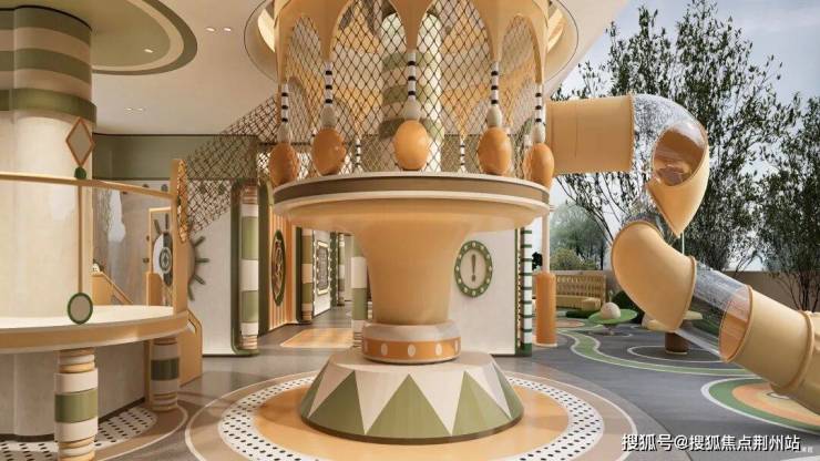 无界欢聚景:襄阳首个“奈尔宝”式主题架空层与外部城市界面相连,形成“城市之窗”,首创的无界窗口设计,实现社区的室内童趣与城市景观自由对话。