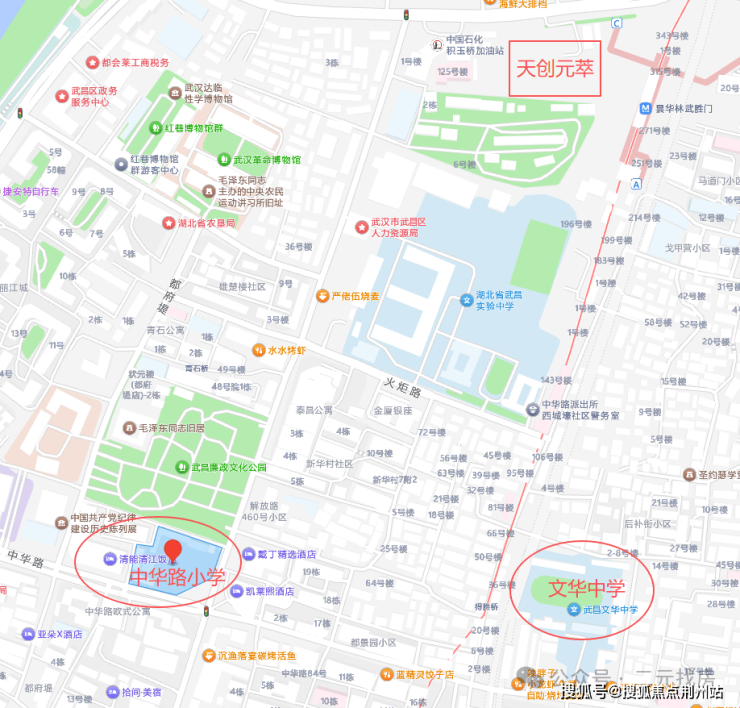 天创元萃位于武昌区中山路与解放路交汇处,旁边就是华发外滩玺、华发农讲所地块。